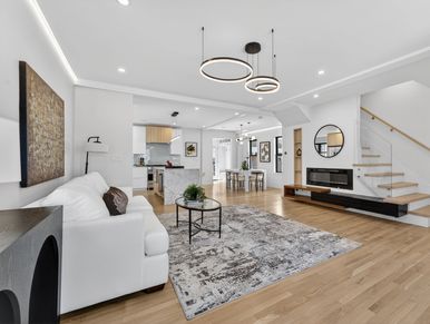 A showstopping glass-panel open stairwell with sequential backlit steps sets the tone the moment you arrive, blending design, light, and movement into a true architectural statement.Experience seamless indoor-outdoor living with a dramatic open-concept layout anchored by a sleek fireplace living room. The sensational custom chef’s kitchen is outfitted for both everyday living and elevated entertaining, featuring premium Fisher & Paykel appliances and refined designer finishes throughout.